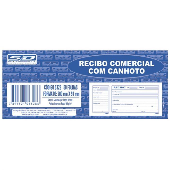 RECIBO COM CANHOTO 50fls . COD. 10046 - PCT C/ 20 UN - SÃO DOMINGOS