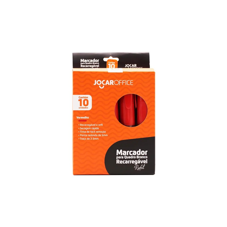 | Nome do Produto | : | MARCADOR QUADRO BRANCO - RECARREGAVEL C/ REFIL - VERMELHO - CX C/ 10 UN - 991003 - JOCAR |