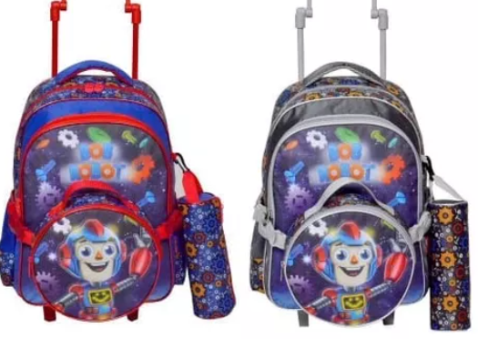 | Nome do Produto | : | 22805 KIT- MOCHILA RODINHA C/ ALÇA + LANCHEIRA + ESTOJO - ROBOS - WINCY |