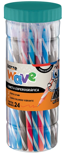 | Nome do Produto | : | CANETA ESFEROGRAFICA WAVE - AZUL/ PRETA/ VERMELHA - 0.7mm - POTE C/24 UN - 904065 - BAZZE TRIS |